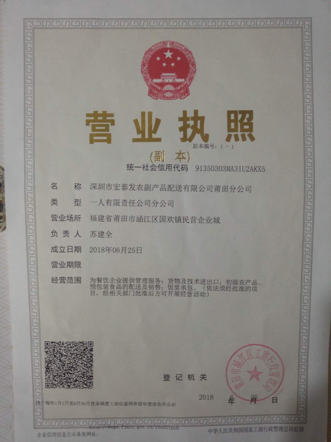 深圳市宏泰發農副產品配送有限公司莆田分公司 版權所有閩ICP備2020021265號